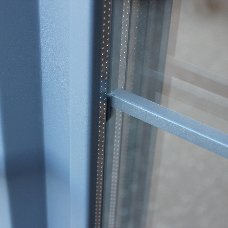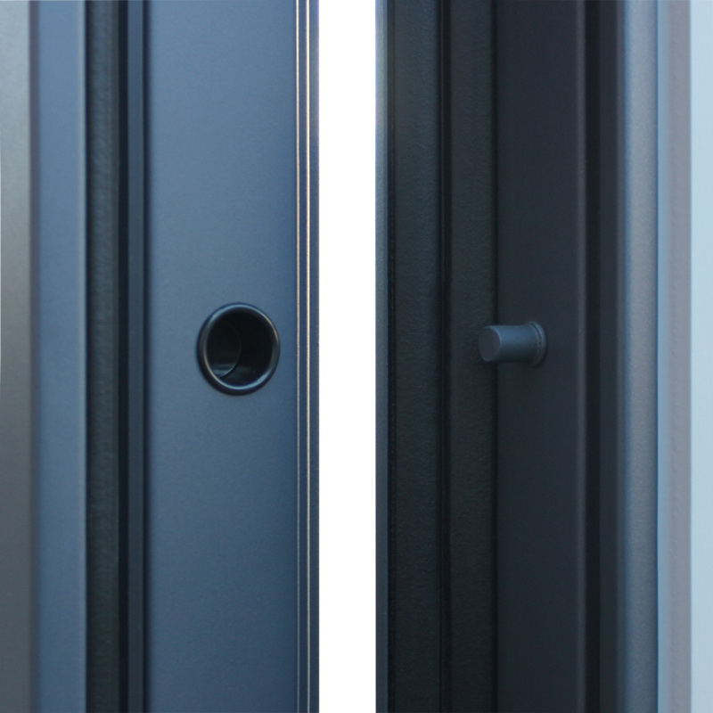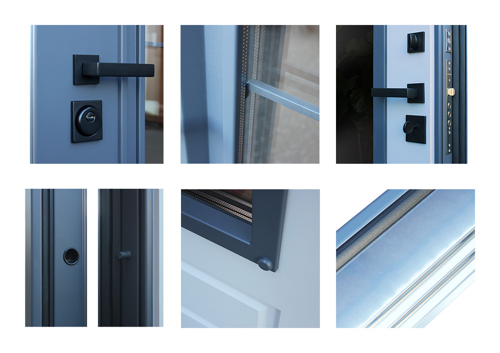 Два слоя покрытия: первый слой - цинкогрунт, второй слой - порошковое покрытие "муар серый". Лист металла 1,8 мм. Два слоя покрытия. Металлофиленки 2 шт. Двухкамерный тонированный стеклопакет. Английская решетка внутри стеклопакета.