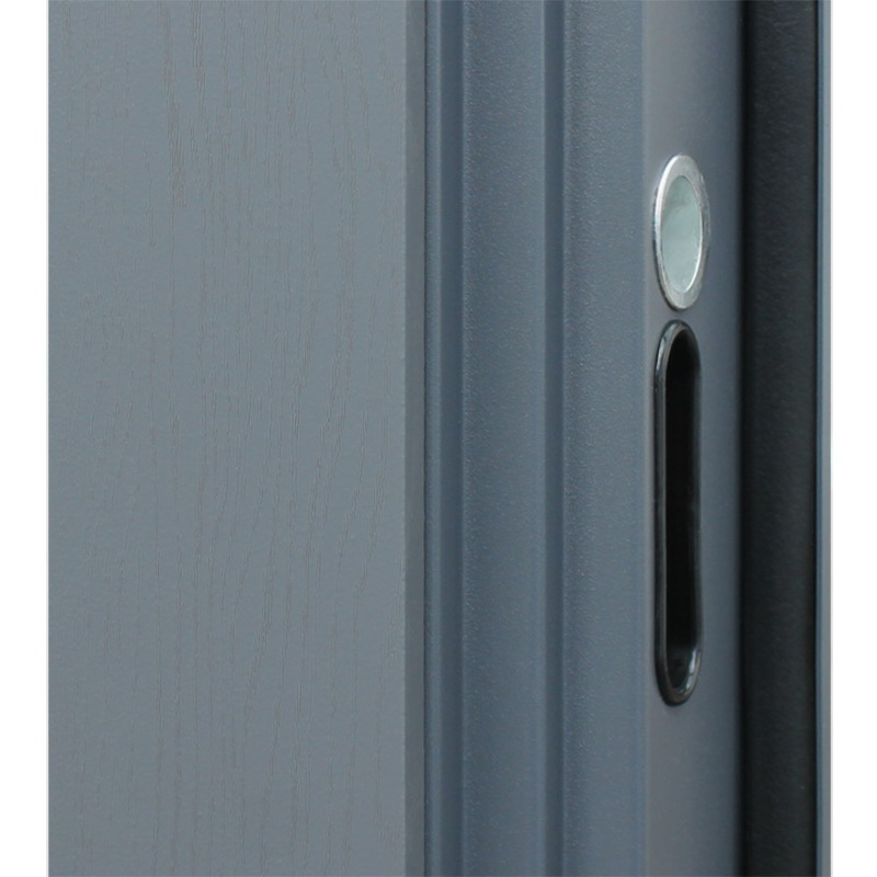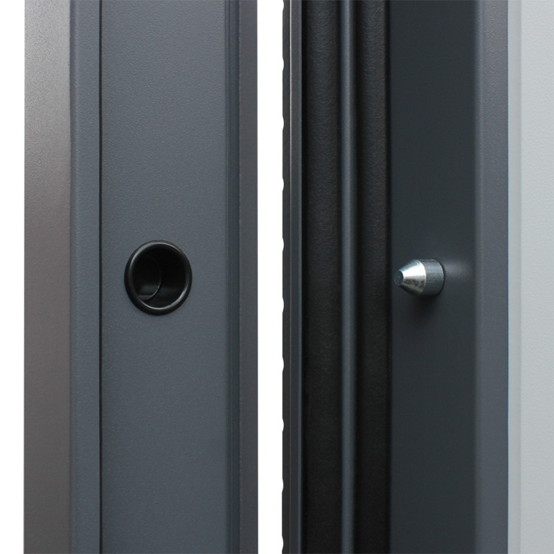 Евроцилиндр К-В (перфокарта). Броненакладка врезная. Штырь противосъемный (3 шт). Накладки со шторками-автомат. Порошковое покрытие "муар серый". Лист металла 1,5 мм.