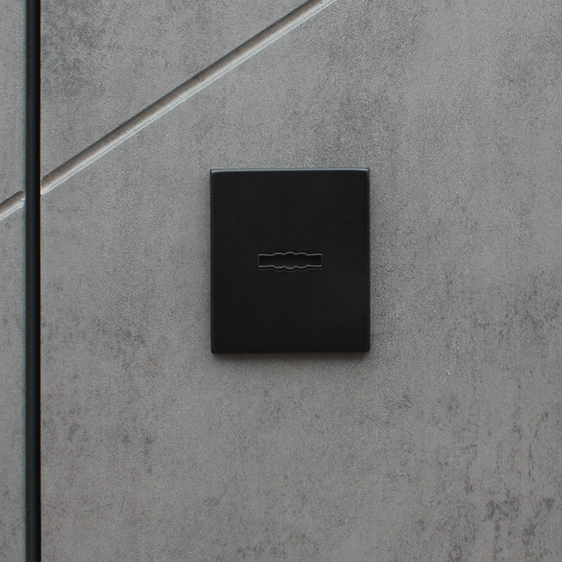 Порошковое покрытие "муар серый". Лист металла 1,5 мм. Экошпонированная панель МДФ 10 мм. Объемная фрезеровка. Цвет "бетон темный".