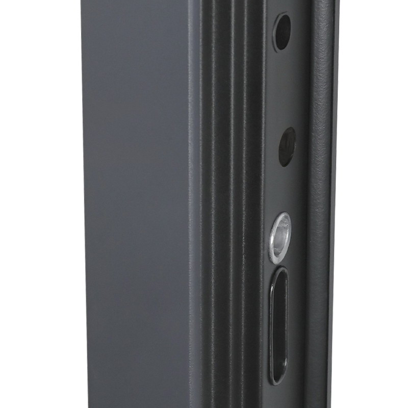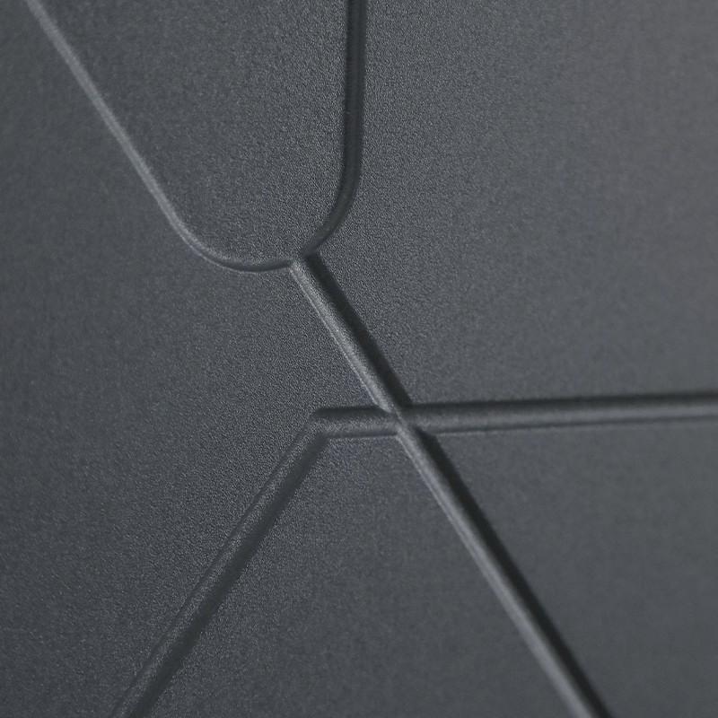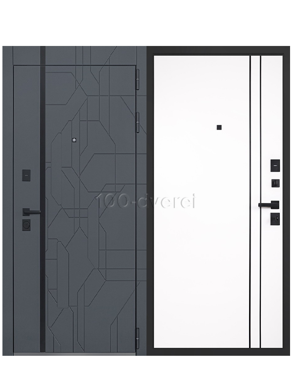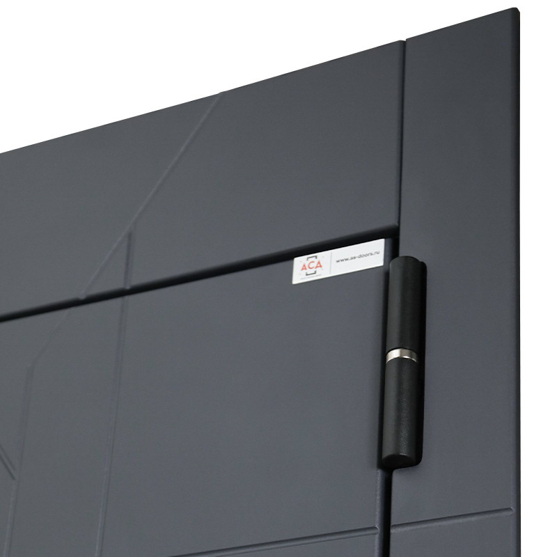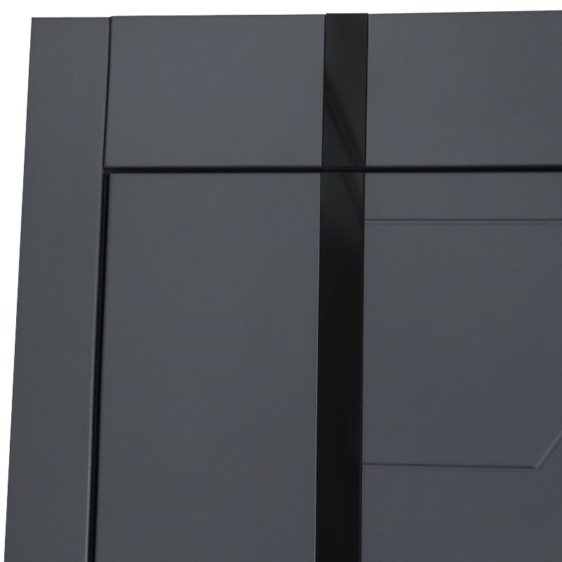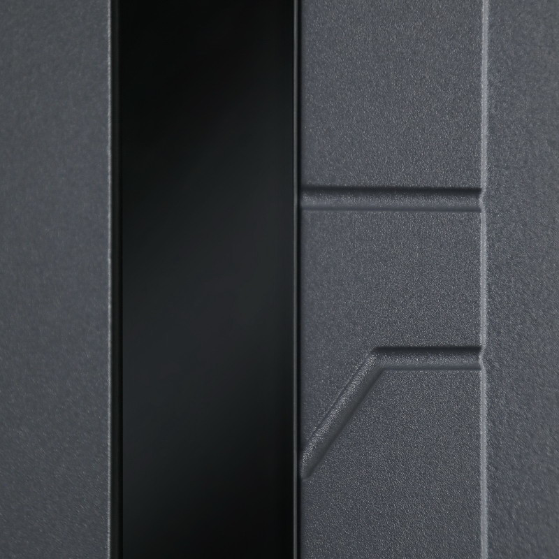 Порошковое покрытие "муар черный". Цвет "графит". Объемная дизайнерская фрезеровка. Вертикальная вставка из черного лакобеля.