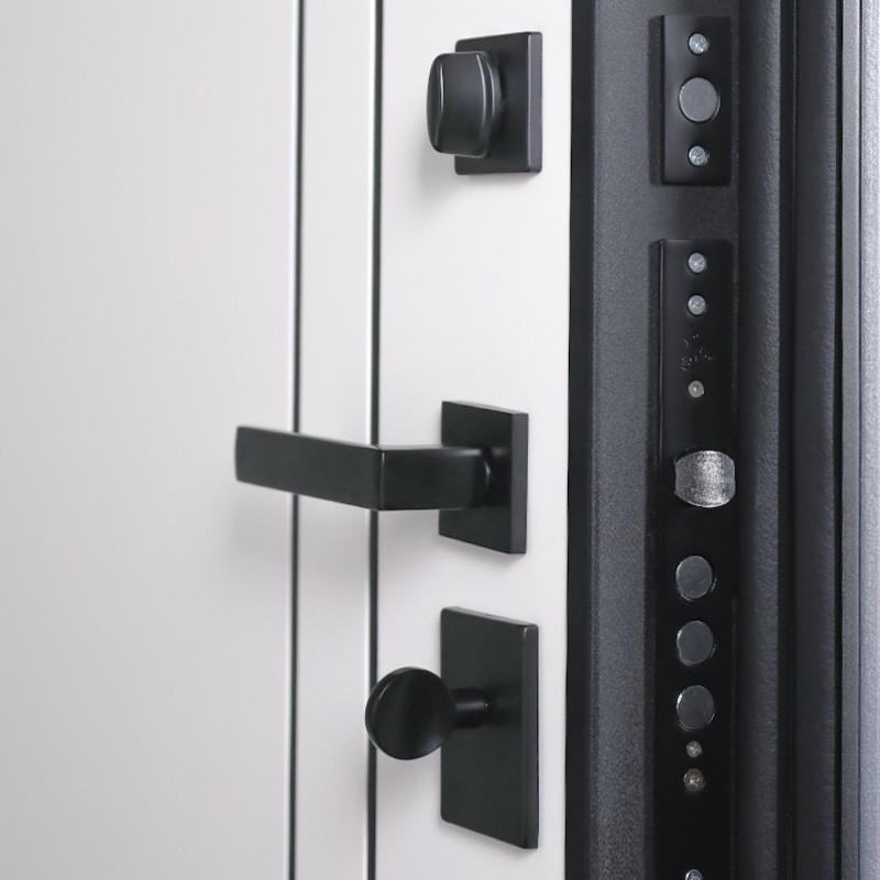 Евроцилиндр К-В (перфокарта). Броненакладка врезная. Штырь противосъемный (3 шт). Порог из нержавеющей стали (цвет "хром").