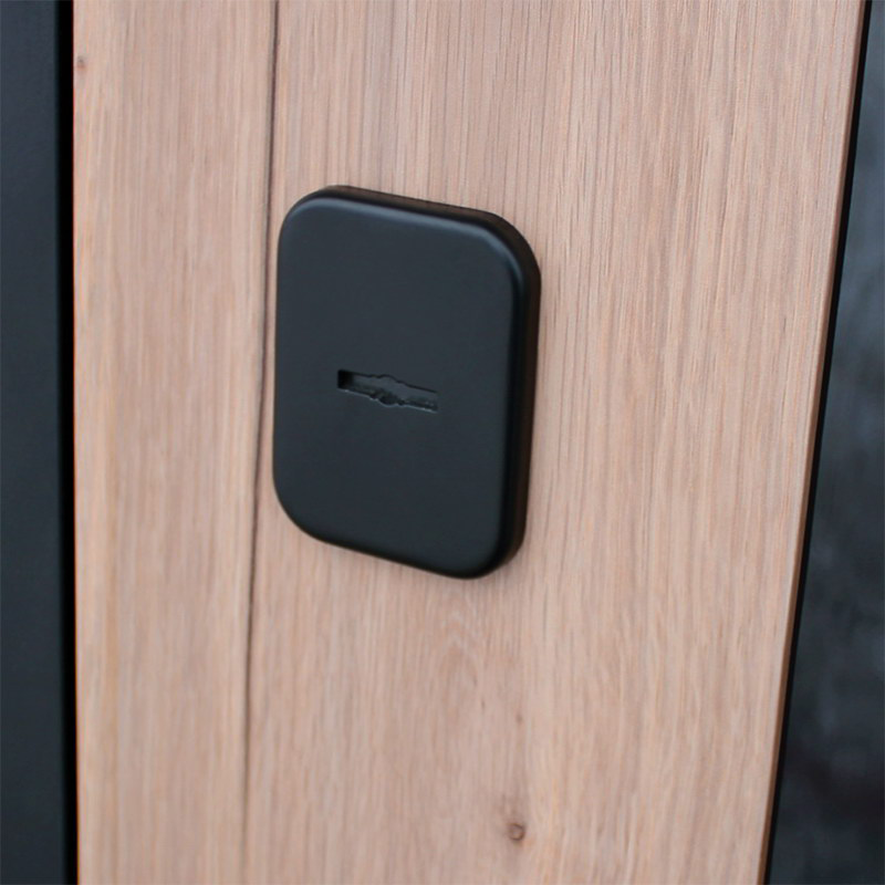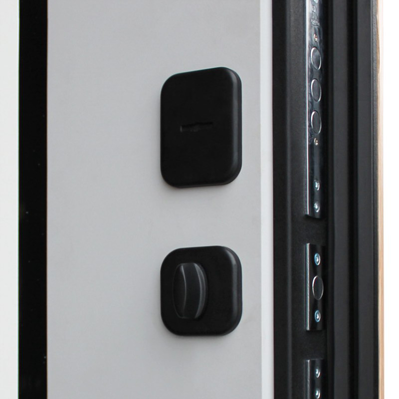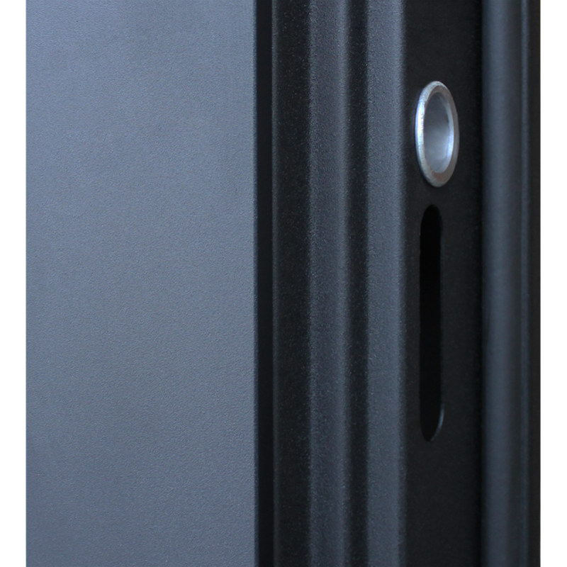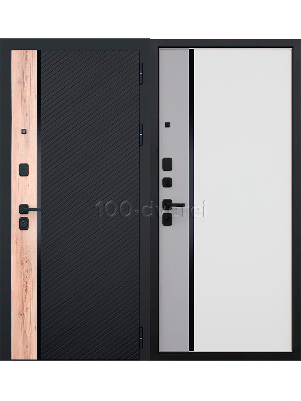 Евроцилиндр К-В перфокарта. Броненакладка врезная на нижний замок. Штырь противосъемный (3 шт). Порошковое покрытие "муар черный". Наружный лист металла 1,5 мм. Панель МДФ 10 мм. Объемная фрезеровка.
