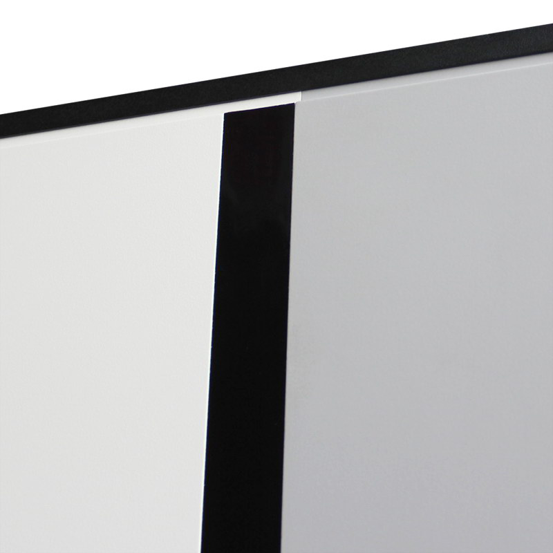 Экошпонированная панель МДФ 10 мм. Цветовая комбинация “белый матовый”, "лайт софт грей". Декоративная пластиковая вставка, цвет "черный".