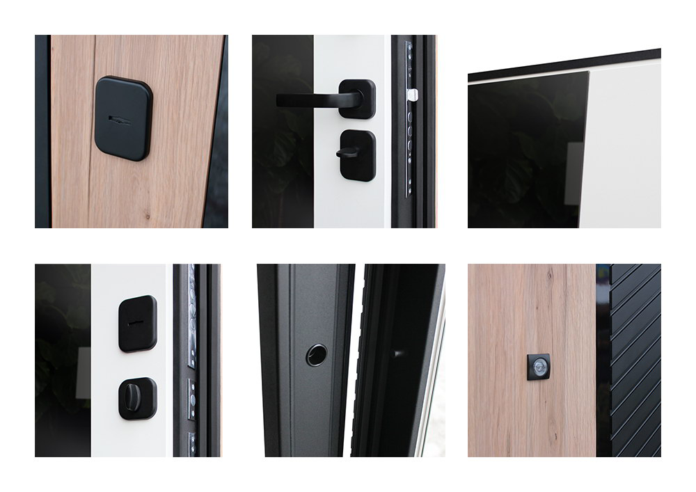 Евроцилиндр К-В перфокарта. Броненакладка врезная на нижний замок. Штырь противосъемный (3 шт). Порошковое покрытие "муар черный". Наружный лист металла 1,5 мм. Панель МДФ 10 мм. Объемная фрезеровка.