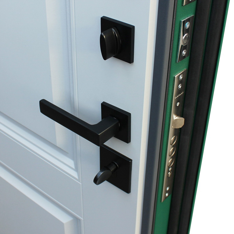 Модель "Терморазрыв 3К Греймор" изготовлена по уникальной технологии терморазрыва дверной коробки и полотна. Внутренние и внешние металлические поверхности полотна и коробки отделены особым конструкционным термослоем и не соприкасаются между собой, защищая дверь от промерзания в экстремальные холода. Внешняя поверхность "Терморазрыв 3К