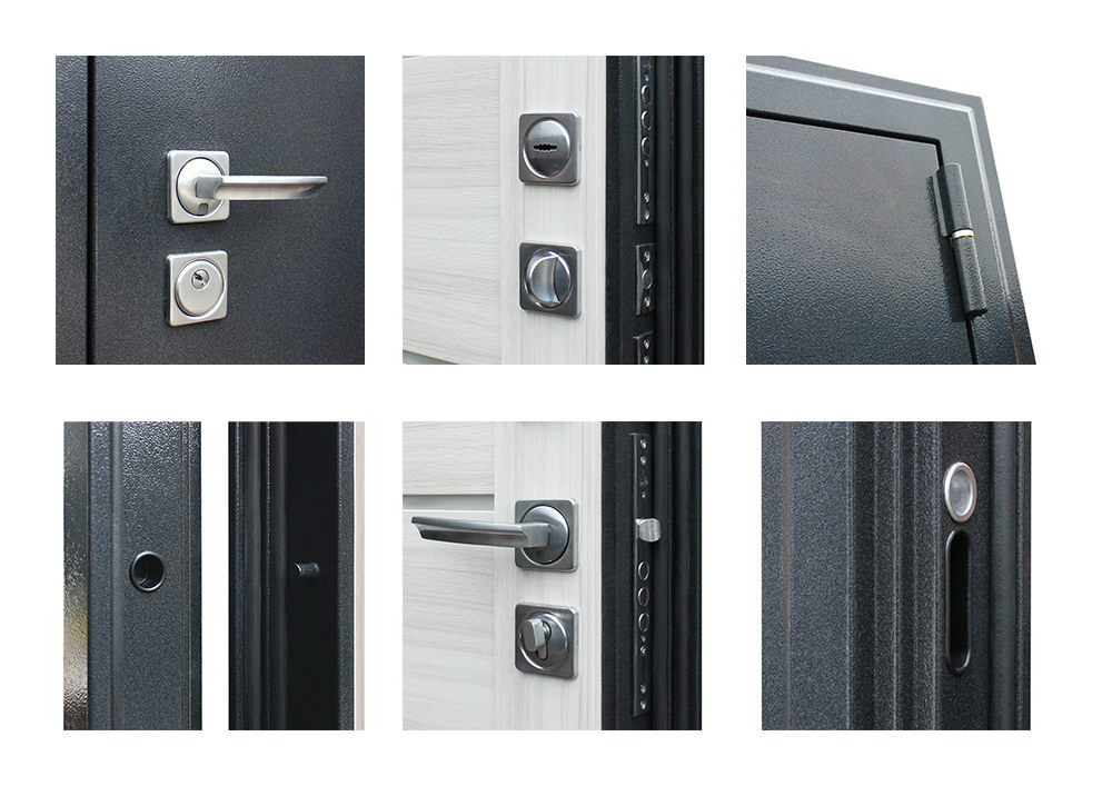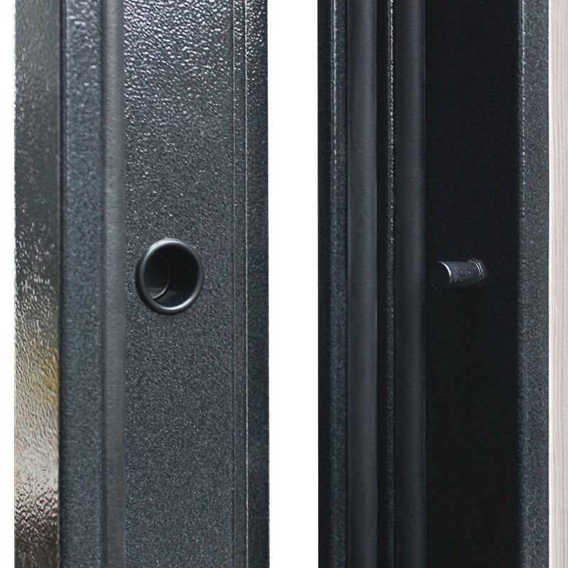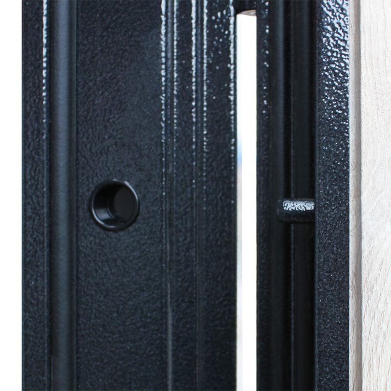 Порошковое покрытие - Букле графит. Лист металла 1,5 мм; наличник фигурный. Давка на металле, четыре полосы