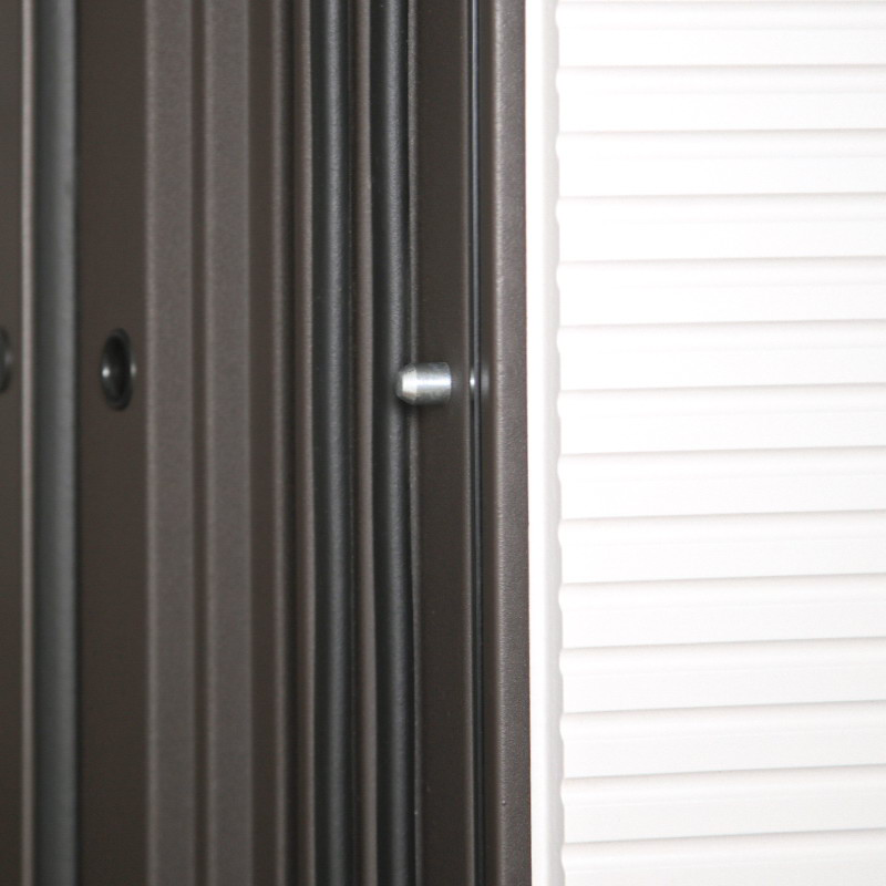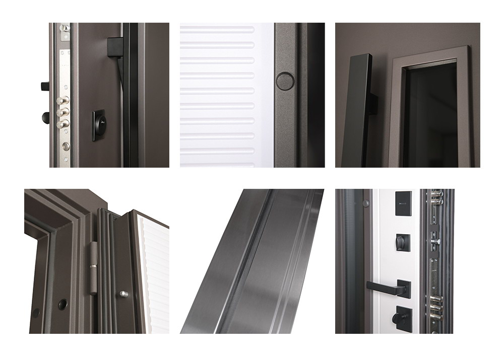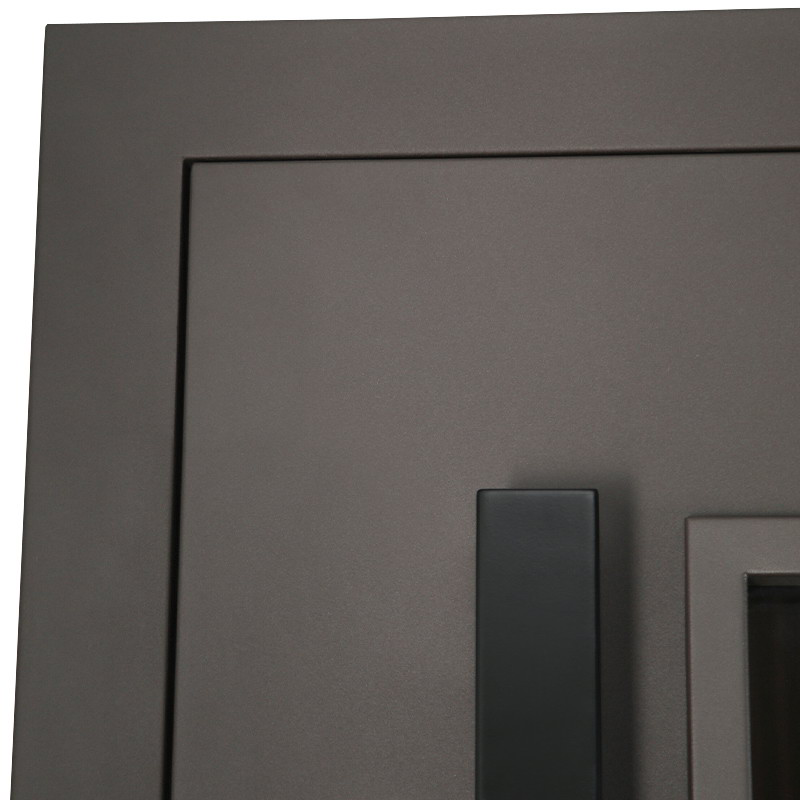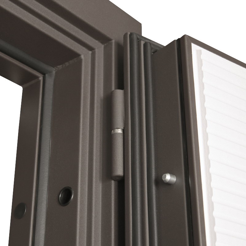 Лист металла 1,8 мм. Два слоя покрытия. Тонированный двухкамерный стеклопакет. Наличник гладкий.