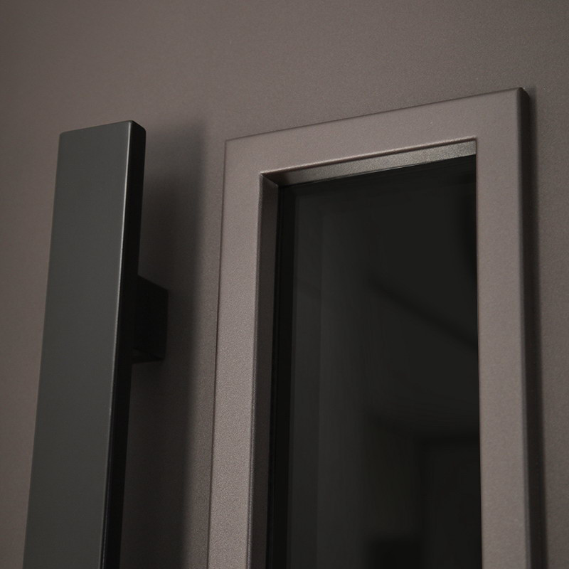 Прижимная рамка 30 мм (покраска в цвет двери). Стеклопакет тонированный.