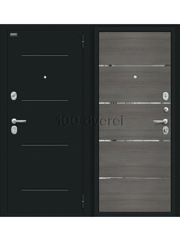 Входная дверь ЛН, предназначена для установки в помещении. Внешняя сторона с декоративным тиснением, а внутренняя гладкая панель с отделкой Экошпон и декоративными вставками из нержавеющей стали. Двери укомплектованы эксцентриком, который обеспечивает легкость открывания двери. Двери изготовлены из легированной холоднокатоной стали.