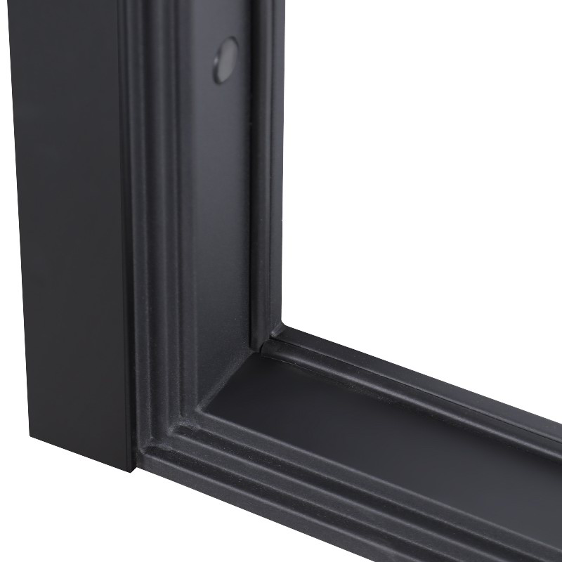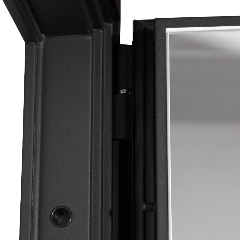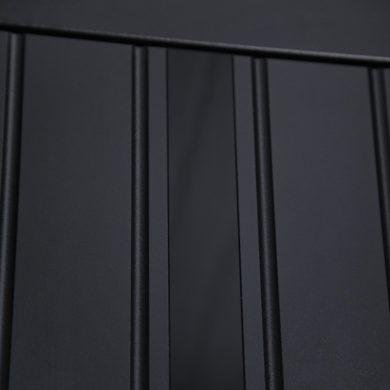 Лист металла 1,5 мм. Панель МДФ 10 мм (цвет "черная шагрень"). Объемная фрезеровка. Вертикальные вставки из пластика 3 шт (цвет "черный").
