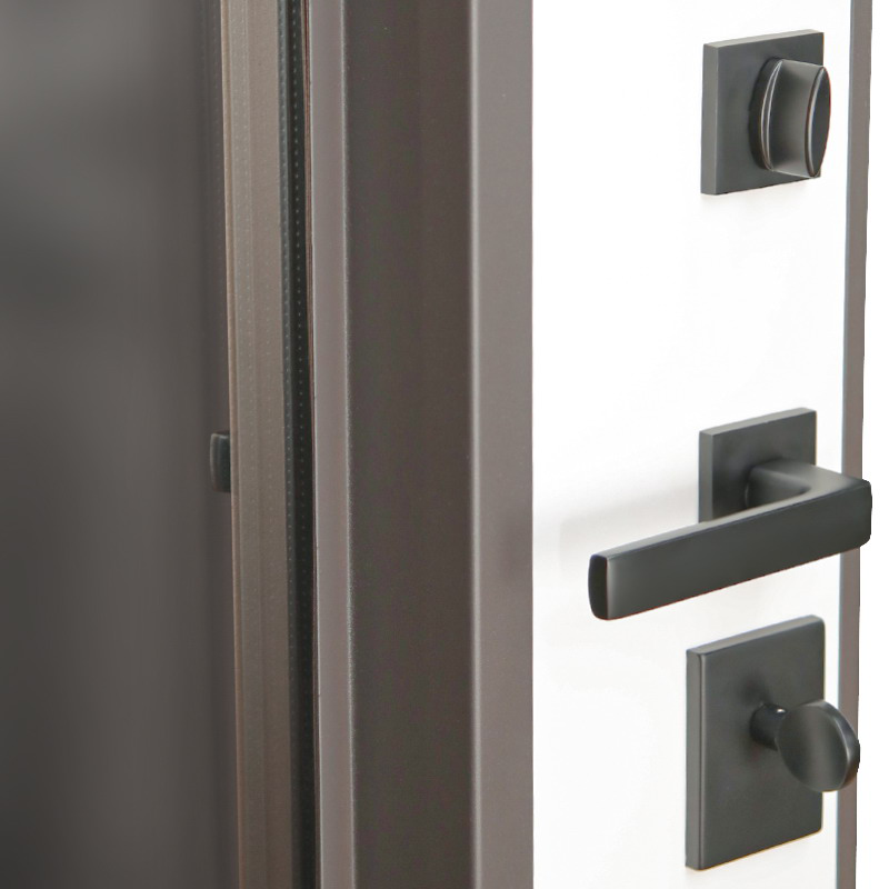 Панель МДФ 16 мм (цвет «белый матовый»). Объемная фрезеровка. Прижимная рамка 30 мм. (покраска в цвет двери). Стеклопакет тонированный.