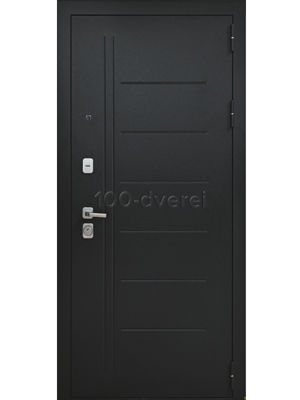 Толщина металла 1,5 мм, дверной глазок, ночная задвижка, фурнитура хром прямоугольная 17 серия, декоративные накладки с защитой от продувания, комплект ключей.