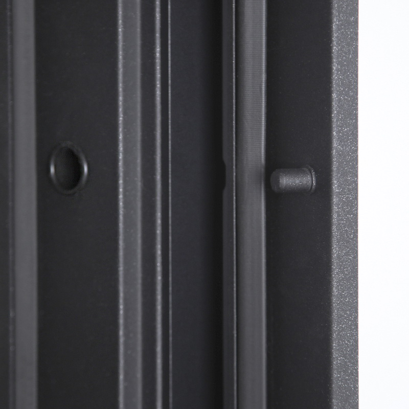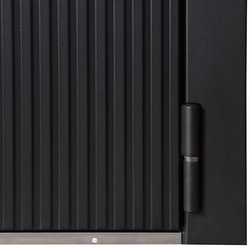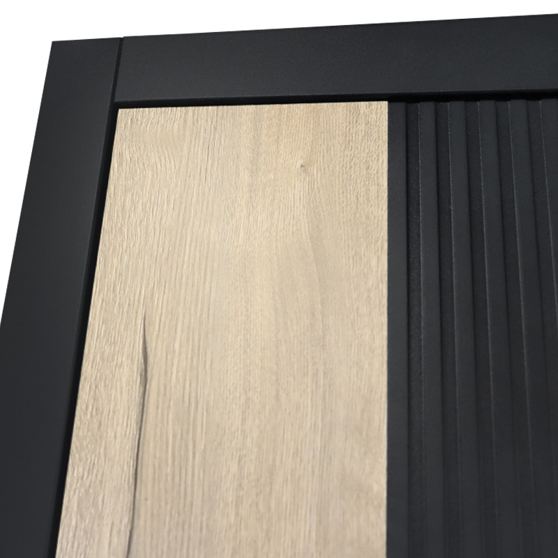 Лист металла 1,5 мм. Экошпонированная дизайнерская панель МДФ 10 мм (цветовая комбинация: "шагрень черная", "дуб галиф натур"). Линейная фрезеровка.