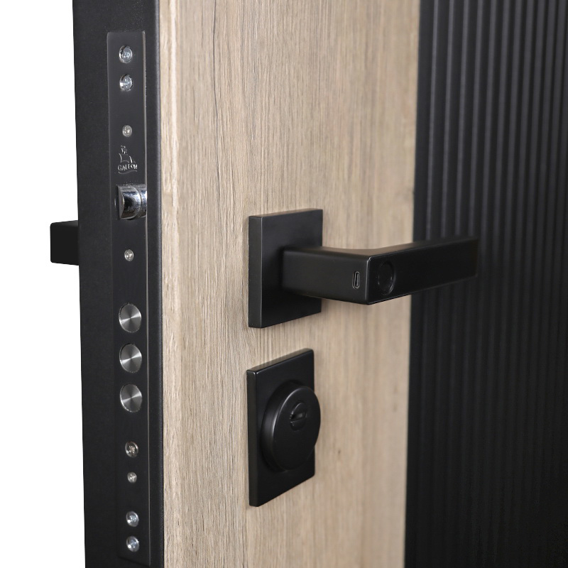 Умная дверная ручка с отпечатком пальца модель Smart lock T888 Черная. Замковая часть адаптирована под замену на на Galeon 808 (цилиндровый замок приобретается отдельно). Замковая часть адаптирована под замену на биометрический врезной замок Smart lock DZ 888 (биометрический замок приобретается отдельно).