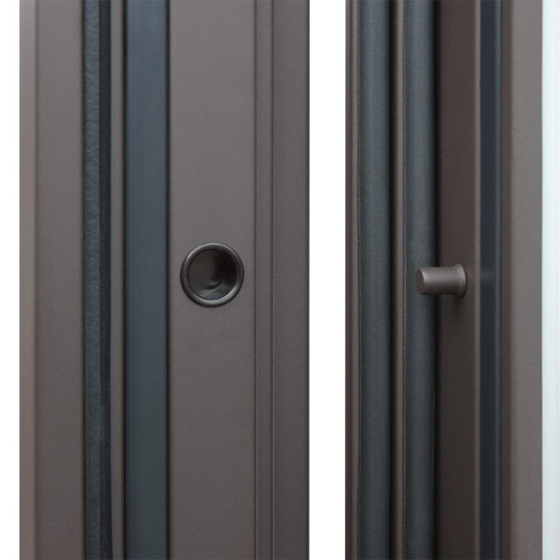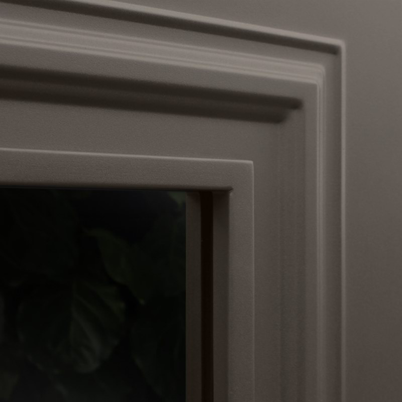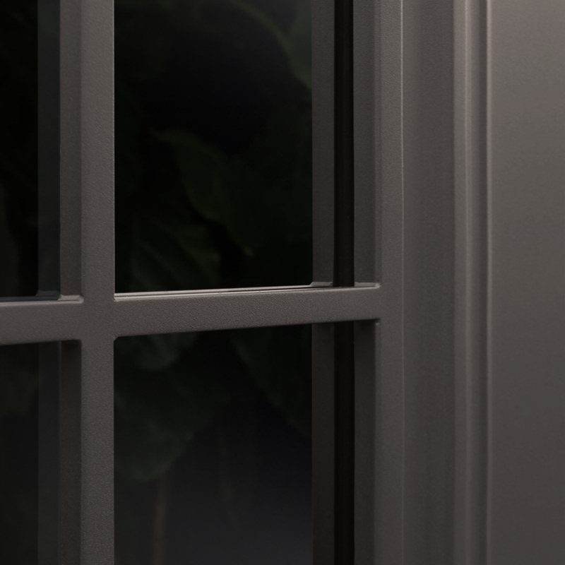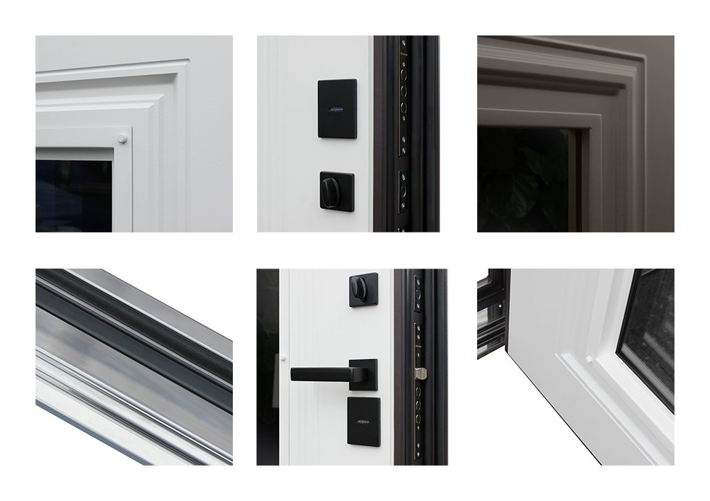 Наружный лист металла 1,5 мм. Декоративный штамп на металле. Порошковое покрытие. Английская решетка. Тонированный стеклопакет. Английская решетка снаружи стеклопакета.
