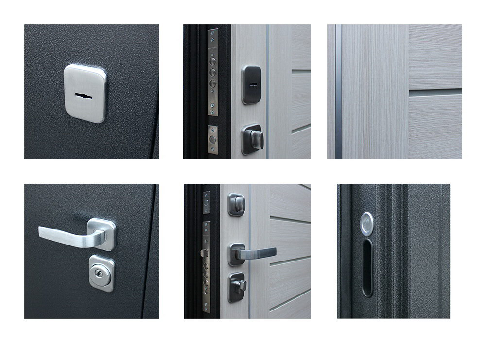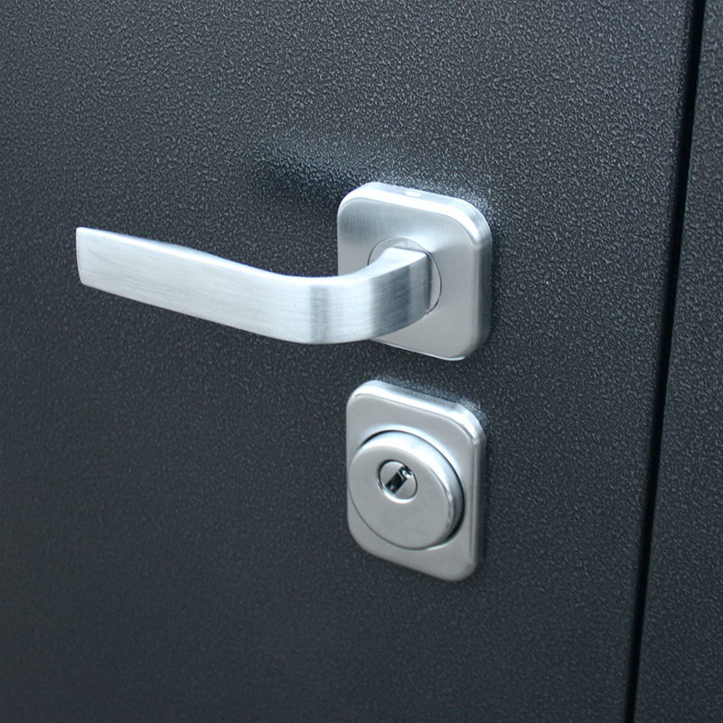 Евроцилиндр К-В (перфокарта). Броненакладка врезная. Штырь антисъемный (3 шт). Накладки со шторками-автомат Кл-С 13. Лист металла – 1,5 мм.