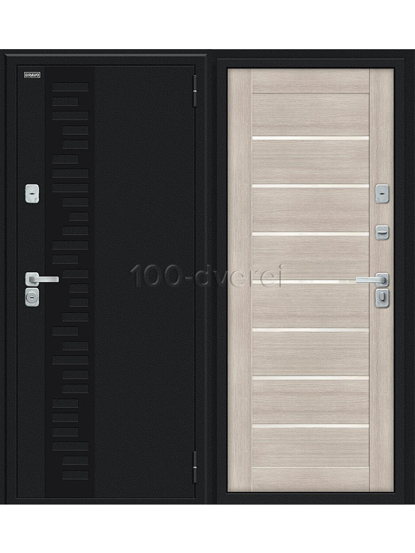 Терморазрыв (термомост) из натуральной пробки по периметру полотна. Внутри полотна установлена конструкционная теплоизоляционная панель SIP (Structural Insulated Panel), которая не только обеспечивает необходимую тепло- и шумоизоляцию, но и придает дополнительную жесткость и прочность дверному блоку. Терморазрыв (термомост) из натуральной пробки между внутренним и наружным профилями коробки. Внутри коробки установлен эффективный тепло- и шумоизоляционный материал из вспененного полиэтилена ламинированного металлизированной пленкой с алюминиевым напылением (фольгой) - Broflex.