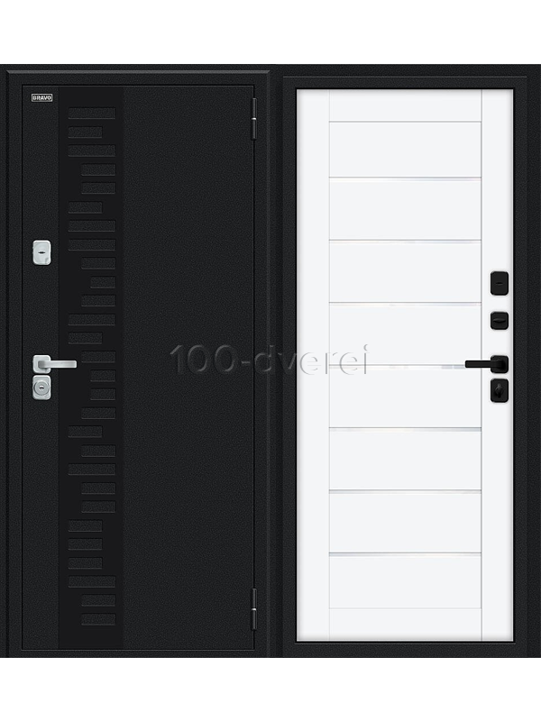 Терморазрыв (термомост) из натуральной пробки по периметру полотна. Внутри полотна установлена конструкционная теплоизоляционная панель SIP (Structural Insulated Panel), которая не только обеспечивает необходимую тепло- и шумоизоляцию, но и придает дополнительную жесткость и прочность дверному блоку. Терморазрыв (термомост) из натуральной пробки между внутренним и наружным профилями коробки. Внутри коробки установлен эффективный тепло- и шумоизоляционный материал из вспененного полиэтилена ламинированного металлизированной пленкой с алюминиевым напылением (фольгой) - Broflex.