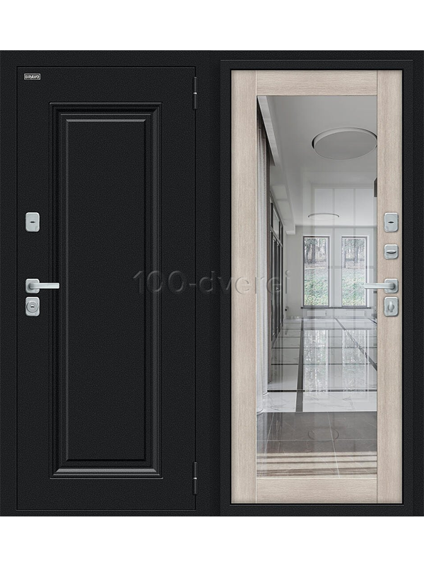 Стальной цельнопрессованный лист «Monolith» с декоративным тиснением, обеспечивает повышенную прочность и защиту от коррозии (в отличии от дверей с «металлофиленками»). Букле черное